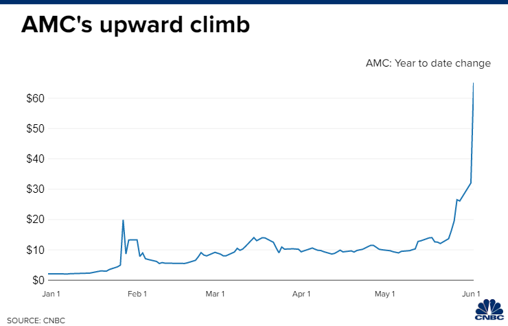 While Goldman Sachs believes that the market is too upbeat about where movie theaters will stand in the recovery – the bank downgraded Imax and Cinemark to sell – small-time retail investors aren't necessarily interested in such projections. That shows with Reddit favorite AMC.