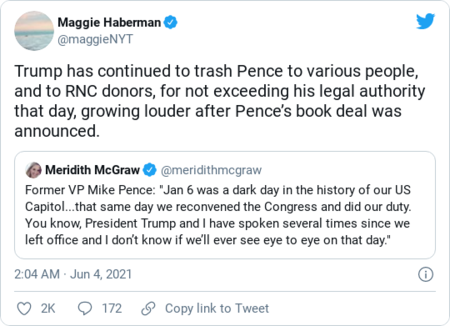 | | | Washington, Fast. | | | | | | | Okay, now it's ackshually Friday, and national 🍩 donut 🍩 day (which go great with vaccines, beer, and just about everything). Have a lovely weekend & see you on Monday. | | | The campaign 🚨 2024 WATCH 🚨: Former vice president Mike Pence appeared in the "first in the nation" state last night where he made news for saying that he still disagrees with former president Trump over the Jan. 6 insurrection. But Pence carefully infused his establishment bona fides with cornerstones of Trump's MAGA agenda that in part fueled the storming of the Capitol by a pro-Trump mob. At the Hillsborough County Republican Committee's annual Lincoln-Reagan Awards Dinner in Manchester, N.H, Pence decried Democrats' efforts to "codify many of the practices that create the greatest opportunity for fraud," and called the GOP a party that "makes it clear that election integrity is a national imperative and responsibility." The former vice president did not explicitly peddle the ex-president's false claims that the November election was stolen from him but issued clear support for the GOP's campaign against voter fraud despite no evidence of significant irregularities and very few instances of voter fraud in the 2020 election. Former Vice President Mike Pence addresses the GOP Lincoln-Reagan Dinner last night in Manchester, New Hampshire. (Photo by Scott Eisen/Getty Images) | Pence did create some distance from former president Trump who pressured Pence to reject the results of the electoral college on Jan. 6: - "And that same day, we reconvened the Congress and did our duty under the Constitution and the laws of the United States…You know, President Trump and I have spoken many times since we left office. And I don't know if we'll ever see eye to eye on that day, but I will always be proud of what we accomplished for the American people over the last four years."
