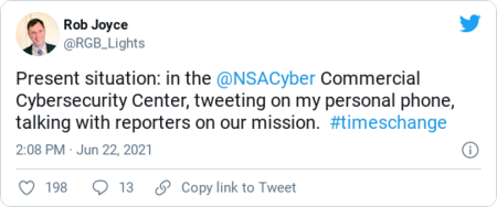 | The National Security Agency, which once did its work almost entirely in the shadows, is evolving into a far more public institution that's eager to cooperate with parts of the private sector. The most visible symbol of that shift is a cybersecurity collaboration center that opened in January and is custom-designed for agency officials to host industry cybersecurity pros and hash out responses to major hacking challenges. The agency has worked out deals with numerous defense and technology companies to make regular visits to the center, said Rob Joyce, director of NSA's Cybersecurity Directorate, although he declined to name the companies or provide a specific number that have joined. The goal is for some company officials to be based in the center full time, though that has been delayed by the pandemic, Joyce said. "If you dealt with NSA a couple of years ago in cybersecurity, we were happy to catch things you would throw over that fence line, but we did not have the authorities and the processes to engage in a conversation back," Joyce said, referring to the physical barrier that surrounds the agency's home base in Fort Meade, Md., which is mostly inaccessible to folks without security clearances. "That's what's changed," he said. Joyce made the comments during a media tour of the collaboration center — another event that would have seemed outlandish a few years ago for the spy outfit that was jokingly referred to as "no such agency." Rob Joyce, director of NSA's Cybersecurity Directorate, speaks to reporters at the agency's Cybersecurity Collaboration Center. (NSA) | There are two key things that prompted the NSA's transformation. First was the backlash to Edward Snowden's 2013 revelations about the agency's widespread surveillance, which sometimes scooped up communications from U.S. citizens who were in contact with foreign surveillance targets. In the wake of the leaks, NSA officials pledged to be far more transparent with the public about their operations. That's been a difficult task while also maintaining secrecy about spying operations. The second major driver is the pace and scale of cyberattacks, which increasingly are threatening to destabilize the economy and threaten public safety. The Colonial Pipeline ransomware attack in May disrupted gas supplies across the southeastern United States. The SolarWinds attack could have brought large chunks of the government and top companies to a screeching halt if the Russian hackers allegedly behind the operation had opted to launch a destructive attack rather than simply steal information. "Things have to change because doing what we did yesterday isn't going to solve the problem," Joyce said. Joyce wants the government to be better at preventing cyberattacks against industry rather than mopping up the damage once it's already happened, he said. "We don't want the federal government to be exceptional at incident response. At that point it's too late," he said. Collaborating more closely with industry will also give NSA better visibility into the kind of attacks hackers are launching and a possible early warning about actions by adversaries such as Russia and China, Joyce said. Morgan Adamski, chief of NSA's Cybersecurity Collaboration Center, shows off the new center to media. (NSA) | The center is designed for collaboration specifically with companies in the defense industrial base and that provide large-scale technology services. That second category could include major technology platforms, cybersecurity companies and providers of cloud computing services. "We have [company officials] coming in for meetings, conversations where we talk about specific actors or specific activity that we've been seeing," the center's chief, Morgan Adamski, said. "We also facilitate analytical, collaborative workshops so our partners can come in and we can work a specific topic for multiple days at a time." The center isn't giving up secrecy entirely. Company representatives who spend a substantial amount of time there are expected to have security clearances so they can collaborate using information that's not shared with the broader public, Adamski said. About one-third of the 3,600-square-foot center is set up for such classified conversations, though the remainder looks more like a traditional tech workspace with cubicles, large glass windows and pillars with inspirational slogans printed on them, such as "imagine," "ideate" and "transform." The center's connected through a virtual chat room with analysts at NSA's main campus who can share insights based on the agency's foreign intelligence collection. The unclassified portion of the center is WiFi enabled, another novelty for the NSA because of concerns about leaking secrets. Joyce made a show of tweeting from his personal cellphone during the news briefing, something that's not usually possible in the classified environments he works in. In a further nod to transparency, the agency is working on setting Joyce up with an official government Twitter account to post from rather than his personal account, he said. | | Share The Cybersecurity 202 |  |  |  | | |