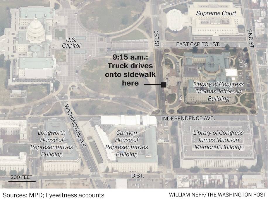 | | | The investigations THE HILL'S TRAUMATIC YEAR: "For the third time in eight months, Washington was brought to a standstill Thursday as the seat of the U.S. government came under the threat of violence, this time from a man who parked a truck near the Capitol, demanded to speak with Biden about a range of grievances and threatened to destroy two blocks of the nation's capital with an explosive device," per our colleagues Lizzie Johnson, Meagan Flynn, Antonio Olivo and Peter Jamison. "Congress is not in session this week. But many legislative aides and other government employees were working, and the rushed evacuation evoked memories of the violent storming of the Capitol just over seven months ago by a mob seeking to overturn the electoral defeat of [former] president Donald Trump." - "While the Capitol has worked to return to normal, including recently taking down the fences surrounding the complex, many of the people working in the complex continue to grapple with lingering trauma from both the Jan. 6 riot and the death of a Capitol Hill officer in early April," the New York Times' Emily Cochrane and Maria Cramer write.