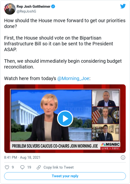DeFazio would not tell us whether he'd vote for the bipartisan bill in it's current form but later in the day, he was far more blunt, saying he was "unwilling at this point to pass this bill without some changes" in an interview with the American Council of Engineering Companies. As it stands, House Democratic leaders are planning to move ahead with a vote advancing the $3.5 trillion framework next week, despite threats from centrist Democrats who have said they'll vote against that legislation without a vote first on the bipartisan infrastructure bill. Will they flip by the time they make it back to Washington? | | | In the agencies JULY CABLE PREDICTED KABUL COLLAPSE: "An internal State Department memo last month warned top agency officials of the potential collapse of Kabul soon after the U.S.'s Aug. 31 troop withdrawal deadline in Afghanistan," the Wall Street Journal's Vivian Salama scooped. - "The classified cable represents the clearest evidence yet that the administration had been warned by its own officials on the ground that the Taliban's advance was imminent and Afghanistan's military may be unable to stop it."