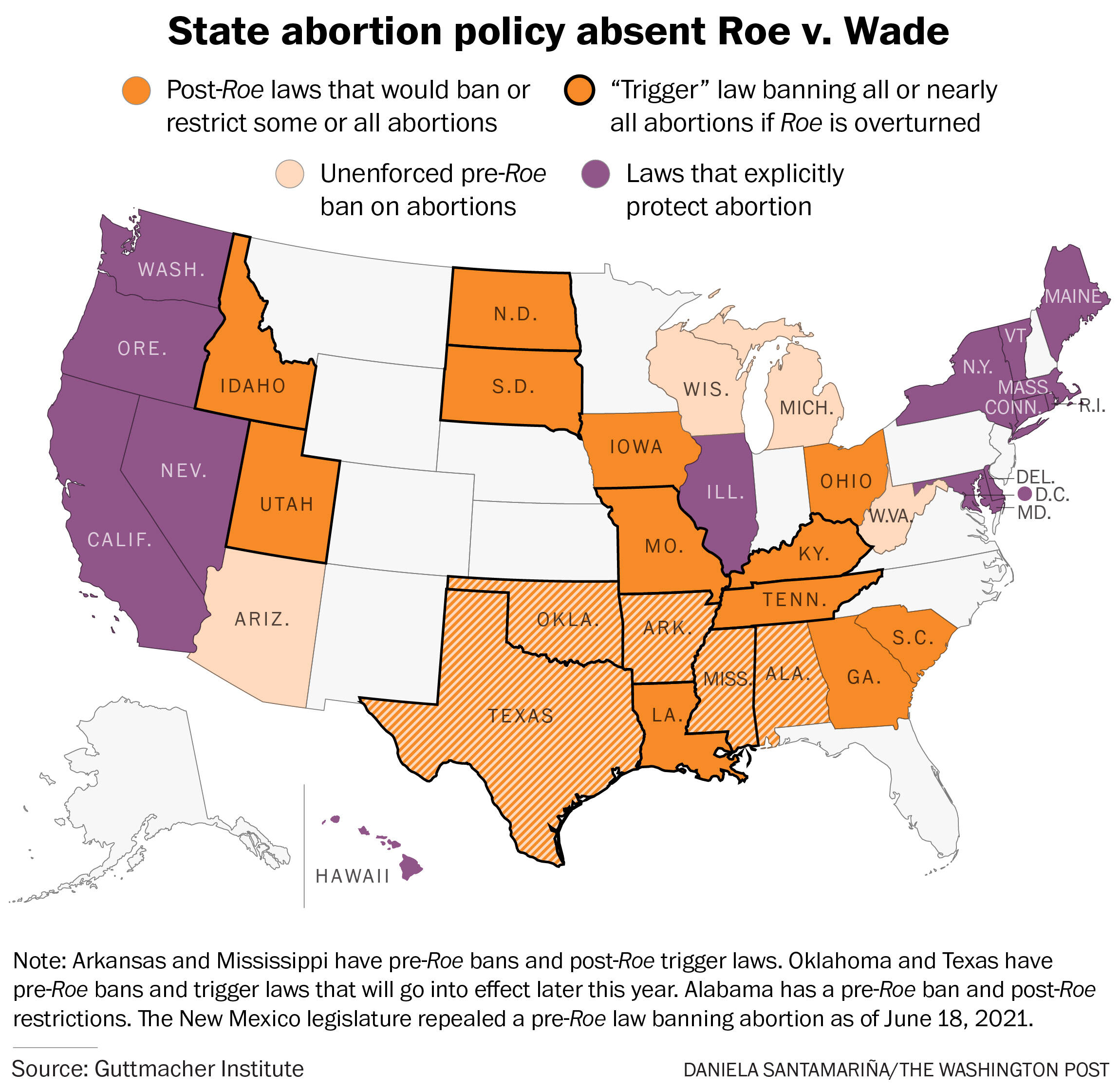 | A publishing note: The 5-Minute Fix will not publish Friday or Monday during the long holiday weekend here in the U.S. See you again Tuesday. We need to talk about Roe v. Wade. That's the 50-year-old Supreme Court decision that legalized abortion nationwide. And it could be revisited very soon. What happened: The high court decided not to block a Texas law banning most abortions after six weeks that even some of the justices said was blatantly unconstitutional. (We reviewed the law in Wednesday's newsletter; more is here.) Why that's significant: The justices didn't officially rule on whether the Texas law is constitutional. They just said it will stay in place while that question is litigated. But they could have put the law on hold while the merits of the case were argued. Keeping it intact — even as some justices said they acknowledge its potential unconstitutionality — was an unexpected move that could signal the court is ready to strike down Roe v. Wade, said Lisa Soronen, executive director of the State and Local Legal Center, which supports municipalities in cases before the Supreme Court. "The justices know that this Texas law violates Roe v. Wade," she said. "They all know that." Keeping the law in place doesn't overturn Roe, but it does make a "really big statement about what they think of Roe," Soronen added. What happens next: It will take a while for this Texas law to make its way through the courts. But this fall, the justices have an opportunity to knock down Roe v. Wade if they want. They'll hear arguments in a Mississippi law that bans most abortions after 15 weeks. Abortion rights supporters protest the state's new law in Edinburg, Tex., on Wednesday. (Joel Martinez/The Monitor via AP) | There is no federal law protecting abortion rights The 1973 Supreme Court ruling in Roe v. Wade is the only federal protection in America for abortion. It guarantees a woman's right to get an abortion in the first half of her pregnancy, before the fetus would be viable outside the womb. If the court knocked down Roe, the states could regulate or allow abortion as they choose. The Guttmacher Institute, which supports abortion rights, estimates that abortion could be severely restricted or illegal in as many as 22 states if the Supreme Court overturns its legal protections for abortion. That's in large part because Republicans control so many state legislatures across America. (Fifteen states have laws on the books protecting abortion rights.) The only other option would be for Congress to step in to protect abortion rights. Add it to the list of the many things Democrats in Washington are trying to do right now as a runaround to Republican-led states (think voting rights, climate change legislation, expanding the government safety net). Let's also talk about a conservative Supreme Court A law like the Texas ban — and the Supreme Court's reaction to it so far — was one of abortion rights advocates' worst fears when former president Donald Trump appointed three conservative justices, saying in the process that he wanted to end legalized abortion. That is closer than ever to happening. The court has taken a pretty decided lean to the right since Trump's final pick, Justice Amy Coney Barrett, cemented its 6-3 conservative majority, writes The Post's legal team. Besides letting the Texas law stand, the court also has: - ended President Biden's national eviction ban, even though the Centers for Disease Control said it was warranted because of the pandemic