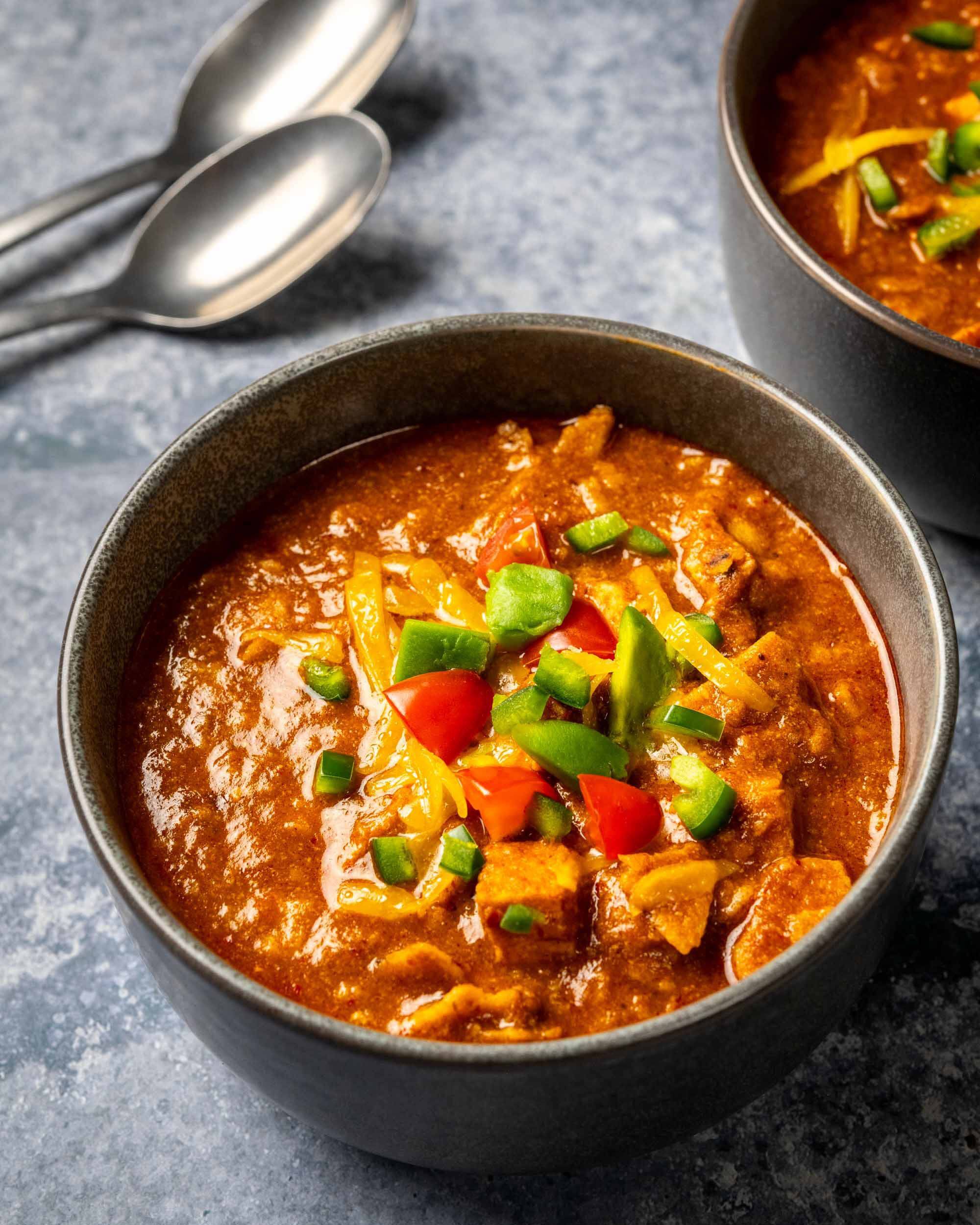 - I love the avocado and tomato garnish >> but a dollop of cranberry sauce and a spoonful of crema might be nice, too. Or, how about tortilla chips, crushed over the top of each bowl?