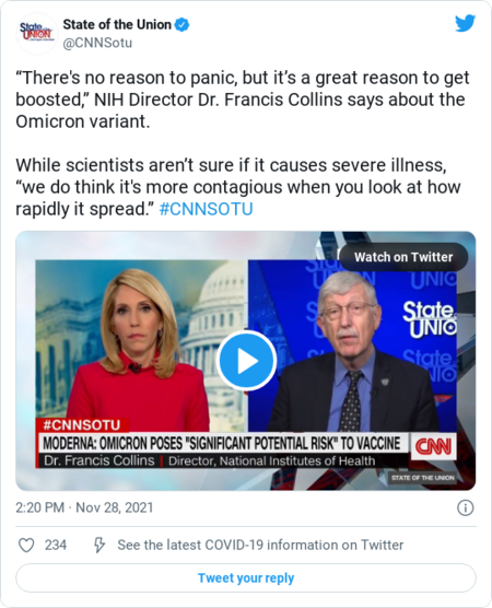 | | But as the news unfolds, health experts inside and outside of the federal government are urging the public not to panic. There's still much to learn about omicron. | | CNN's "State of the Union": | | | | | | Here's what we know and don't know — and when we might learn it by: | | 1. The variant has a high number of mutations. Omicron has more than 30 mutations in the spike protein, the part of the virus that attaches to a human cell and infects it. That's led to questions over whether omicron is more transmissible than other forms of the virus and if it could more easily evade vaccines. | - "That is a new record in terms of the number of mutations," Francis Collins, the National Institutes of Health Director, said on "Fox News Sunday." "It does make you worry, therefore, that it's a sufficiently different virus, that it might not respond as well to protection from the vaccines. But we don't know that."