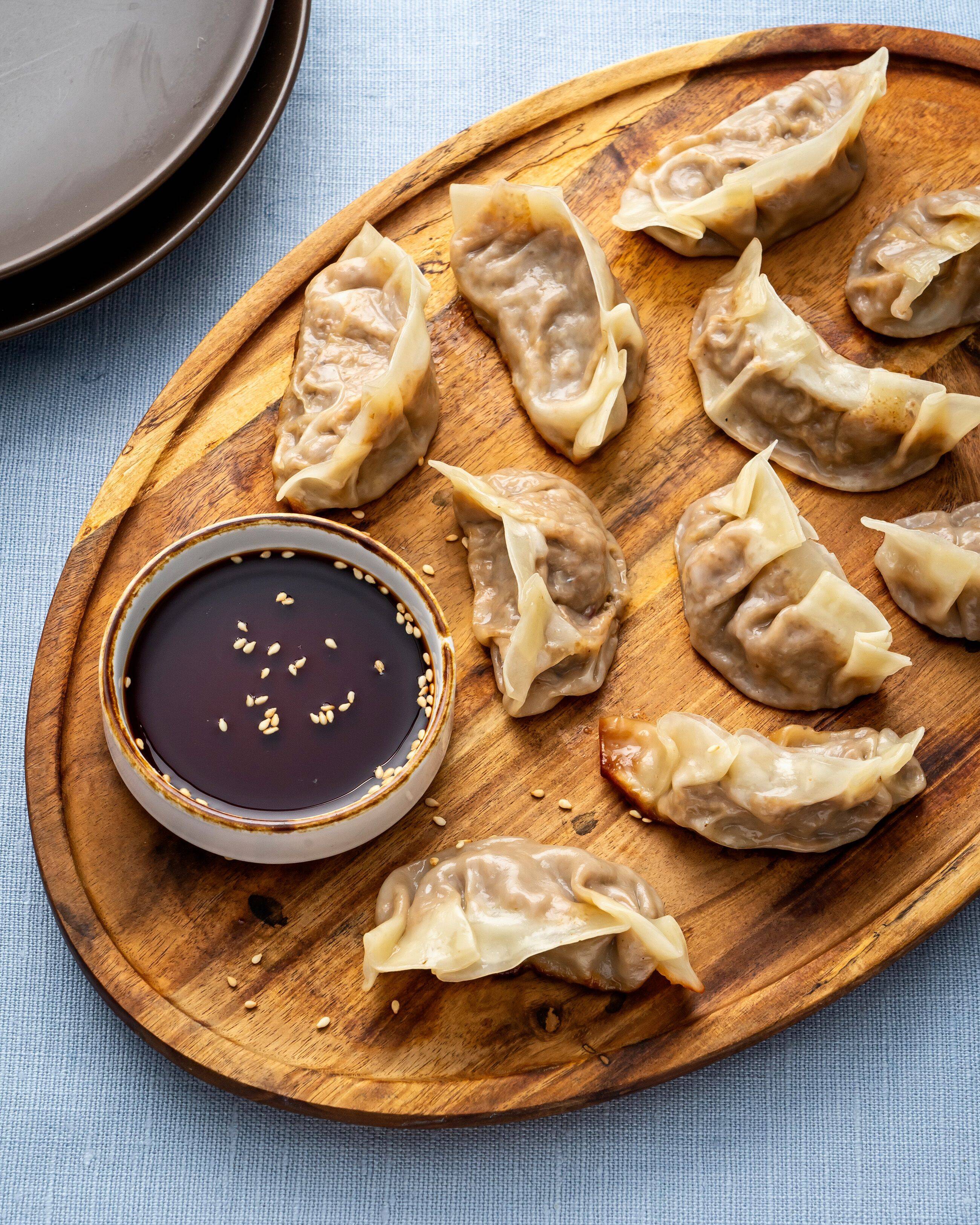 Steps1. Squeeze as much water as possible from the mushrooms and bamboo shoots. Add to the bowl of a food processor and pulse until finely chopped. (If you do not have a food processor, finely chop the vegetables by hand.) In a medium bowl, mix together the chopped vegetables, hoisin sauce and chili-garlic sauce until evenly combined. 2. To form the dumplings, fill a small bowl with water. Place a dumpling wrapper on the countertop and spoon 1 tablespoon of the mushroom mixture into the center of the wrapper. Dab your index finger in the water and dampen the edges of the wrapper. Fold in half, creating a half-moon. Gently press the two halves together at the center of the curved edge. Then, working your way down one side from the center, make 2 small pleats and press the edges closed. Repeat on the other side of the dumpling. When you're done, the dumpling will be closed, with 4 pleats and a slight curve. Repeat until you run out of the mushroom mixture. You should get about 20 dumplings. (Alternatively, you can simply seal the dumplings without pleating by pressing the edges of the folded wrapper together and gently crimping the sealed edge 4 times.) 3. In a medium, lidded nonstick skillet over medium-high heat, warm 1 tablespoon of oil until shimmering. Add half of the dumplings, seam side up and evenly across the pan so they aren't touching, and fry until golden on the bottom, 2 to 3 minutes. With the lid in hand, quickly pour 1/4 cup of water into the skillet, cover, and steam for 5 minutes, until the dumpling wrappers are cooked through; remove from the pan. Repeat with the remaining dumplings, then serve hot or warm with the dipping sauce. From Voraciously staff writer Aaron Hutcherson. Tested by Aaron Hutcherson. Nutrition information per serving (based on 4): Calories: 202; Total Fat: 8 g; Saturated Fat: 1 g; Cholesterol: 3 mg; Sodium: 538 mg; Carbohydrates: 28 g; Dietary Fiber: 3 g; Sugars: 5 g; Protein: 5 g.  | Dessert | π§ Bach: Cello Suite No. 1 in G Major, PrΓ©lude, performed by Yo-Yo Ma. π "Homemade dumplings bring me closer to family this Lunar New Year, even from far away" by Marian Chia-Ming Liu in The Post. πΊ Jon M. Chu and Jimmy O, Yang talk dumplings, family, representation and food. π Squid ink potstickers. π£ If you liked this newsletter, please forward it to a friend! |
