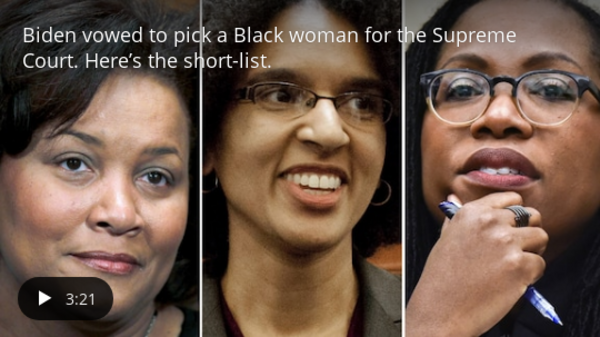 - "Although Democratic senators, if all are present, would not need Republicans to confirm Biden's eventual nominee, administration officials are working assiduously to ensure his pick does not become only the second Supreme Court justice in well over a century to be confirmed without bipartisan support."