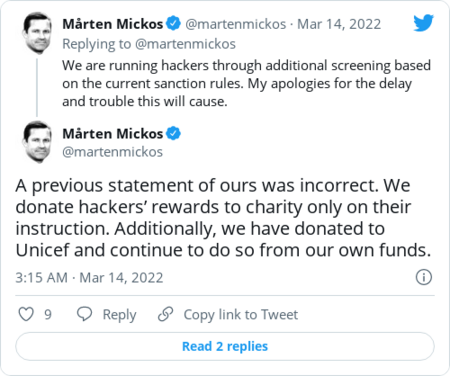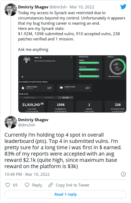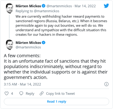| | Ukraine has been pushing to further isolate Russia online. The Internet governance body ICANN previously declined a request from Ukrainian officials to suspend the main Russian Internet domain, .ru, which would have made Russian websites unreachable outside the country. A coalition of Internet freedom and civil society groups, including the Wikimedia Foundation and Access Now, has urged doing everything possible to maintain Internet access in Russia and Belarus. Busting through the digital iron curtain: A website designed by Polish programmers aims to break through the Russian censorship efforts, the Wall Street Journal's Bojan Pancevski reports. The site allows people around the world to send a message to a random Russian recipient from among roughly 20 million cellphone numbers and close to 140 million email addresses obtained by the programmers. Users can draft their own message or send a prewritten one in Russian that urges the recipient to bypass Russian President Vladimir Putin's media censorship. The conflict has also divided ethical hackers. Such hackers, known as "white hats," frequently collaborate across borders to root out hackable vulnerabilities before cybercriminals can find and exploit them. That work is often done in exchange for cash payouts known as "bug bounties." As a result of Western sanctions, however, companies that organize such hacking have had to cut ties with ethical hackers that reside in Russia and its ally Belarus, which has joined the conflict on Russia's side. | | Here's more from ethical hacker Dmitrity Shagov, a Russian citizen who previously did work for the bug bounty firm Synack. | | | | | | Synack CEO Jay Kaplan confirmed to me that the company had disabled accounts for hackers who reside in Russia and Belarus. The restrictions do not apply to Russian and Belarusian citizens living elsewhere, he said, and the company paid out everything that was owed to the hackers before suspending them, he said. | | "Like many U.S. technology and cybersecurity companies, we have valuable team members around the world, including in Ukraine and Russia. … We're doing everything we can to support our Ukrainian team members and their families," he said. | | Another top bug bounty company, HackerOne, is withholding payments to hackers in Russia and Belarus until it becomes legal to pay them again, per the company's CEO, Mårten Mickos: | | | | | | Mickos earlier tweeted the company was rerouting awards to hackers residing in Russia and Belarus to UNICEF, but later said that was happening only at the hackers' request. | | | | | | |  | The keys | | NSA is investigating whether Russia hacked a U.S. satellite Internet operator in Ukraine | The NSA is investigating along with Ukrainian intelligence and a French cybersecurity agency. (Patrick Semansky/AP) | | | The hack affected availability of Viasat's broadband Internet services in Europe as Russia was invading Ukraine last month, Reuters's James Pearson, Raphael Satter, Christopher Bing and Joel Schectman report. Viasat works as a defense contractor for the U.S. and Ukrainian military, though it said its government clients who contract directly with the firm weren't affected. Context: If Russia did hack the Internet operator, it would mark one of the most significant cyberattacks in the conflict, which has been otherwise comparatively light on hacking. "The consequences are still being investigated but satellite modems belonging to tens of thousands of customers in Europe were knocked offline," Pearson, Satter, Bing and Schechtman write. "The hackers disabled modems that communicate with Viasat Inc's KA-SAT satellite, which supplies Internet access to some customers in Europe, including Ukraine. More than two weeks later, some remain offline, resellers told Reuters." French cybersecurity agency ANSSI and Ukrainian intelligence officials are investigating the cyberattack along with the NSA. Cybersecurity firm Mandiant is investigating it for Viasat. | An infamous Russian troll farm could be behind pro-Putin propaganda campaign | The U.S. government has indicted Russians working for the IRA, and the IRA itself has been sanctioned. (Andrey Rudakov/Bloomberg News) | | | A pro-Putin network of accounts on Twitter, TikTok and Instagram share "behavior, content and coordination" with the Internet Research Agency (IRA) troll farm, ProPublica's Craig Silverman and Jeff Kao write. U.S. officials have charged Russians working at the IRA for interfering in the 2016 election and sanctioned the company. "These accounts express every indicator that we have to suggest they originate with the Internet Research Agency," said Clemson University professor Darren Linvill, who has studied the IRA. "And if they aren't the IRA, that's worse, because I don't know who's doing it." Social media companies and the U.S. government haven't yet attributed the campaign to the IRA. The campaign was most visible on TikTok, where around a dozen accounts got 250 million views and over 8 million likes after parroting Russian talking points. The accounts began posting almost exclusively about Ukraine last month. Social media companies are nevertheless kicking many of the accounts offline. | - TikTok has removed all of the active accounts.