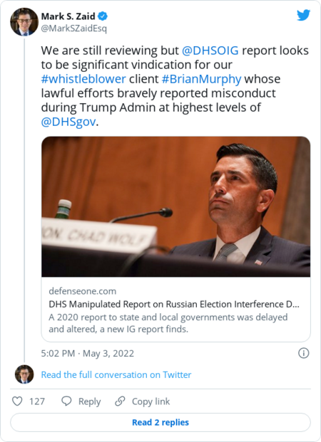 | The deal with Synack will open up Democracy Live's systems to about 1,500 cybersecurity researchers vetted by the company who work on a bug bounty model — essentially meaning they get paid for the computer vulnerabilities they find and more damaging vulnerabilities pay out more. | The bug reports won't be public, Finney told me, but he pledged to make them available to any state or locality that's interested in his product and to cyber researchers and academics — including those who are openly opposed to online voting. "We want to be as transparent as possible," he said. | The dilemma in a nutshell | When people vote with secret ballots online there's no way to definitively verify that hackers haven't changed those votes before they reach election officials. There's no way for voters to double check the votes after they hit send and no physical record of the vote that officials can audit if the election results are called into question. There's also an increased danger of people voting on behalf of others because they have access to their devices. Intense security vetting can alleviate some of those concerns but not eliminate them. Many advocates, including Finney, say those risks are worth it in the short term — and in limited pilots — to ensure people can vote who might otherwise be disenfranchised. In the case of military servicemembers stationed abroad, those who can't easily vote by mail often end up sending ballots in by fax machine or email attachment, which have their own security vulnerabilities. "The whole reason why we're doing this is to make it more secure than a fax machine or an email attachment," Finney said. | But election security advocates fear such efforts will be a slippery slope to everyone voting online — a move they say would take elections in the wrong direction amid widespread fear of foreign manipulation and plummeting confidence in the integrity of elections. Some of the biggest online voting boosters are already pushing for wider adoption. Most recently, the D.C. city council considered a plan pushed by Tusk Philanthropies to allow online voting by all voters before scrapping the plan amid an outcry from residents and cybersecurity experts. | Finney says he wants to limit Democracy Live's online voting pilots to voters who might otherwise be disenfranchised for the time being. But he also envisions a longer-range future in which the security risks have been mitigated and online voting can be rolled out more broadly — eventually to all voters. "We're in no rush to make it universally available, but I think there are a lot of great reasons to do that eventually," Finney told me. "The language of next generation voters is mobile, and, at some point, we have to speak that language." Synack CEO Jay Kaplan is on essentially the same page. "People didn't trust mobile banking years ago," he told me. "I think we have to build confidence over time, and it starts at a smaller scale. It personally gives me a lot of confidence that hundreds, if not thousands, of security researchers will have looked at this environment." Finney also has long-term ideas about using online voting to improve voter education — for example by linking candidates' names on the ballot to campaign finance information. "You can be more informed as a citizen voter. You can click on a card and know if it's the NRA or the Sierra Club [funding a candidate]," he said. | |  | The keys | | Trump official meddled with Russian election interference report, watchdog says | Officials accused the former acting Homeland Security secretary Chad Wolf of delaying the release of an intelligence report for political reasons. (Toni Sandys/Pool/The Washington Post) | | Former president Donald Trump's acting Homeland Security secretary, Chad Wolf, asked a top DHS official to hold a report on Russian interference in the 2020 election because it would hurt Trump's reelection campaign, the official told the agency's inspector general. The report described a Russian influence campaign "spreading unsubstantiated allegations that … Biden is of poor mental health" — a line of attack Trump was also deploying at the time. Wolf disputed the report's characterizations of the meeting. He said the meeting focused on problems with the report, which "was not well written" and was "written at the fifth-grade level." DHS officials also added a section to the report about Chinese and Iranian efforts to question Trump's mental state as a "blunting feature" to balance the report. But that shouldn't have been a consideration, and the box "served an unclear intelligence purpose," the inspector general said. Lawyer Mark Zaid called the report "significant vindication" for his client Brian Murphy, a former DHS official who filed a whistleblower complaint about the report in 2020: | Leaked Supreme Court opinion is sparking fears about data security | The leaked decision has prompted fears that people seeking abortions could be tracked if abortion becomes illegal in some states. (Bonnie Jo Mount/The Washington Post) | | Cybersecurity Twitter was thick Tuesday with warnings about data collected by apps and online services that might be used to identify women seeking abortions in the event the procedure becomes illegal in some states. The tweets were sparked by a leaked draft of a majority Supreme Court decision to overturn the 1973 Roe v. Wade ruling that affirmed abortion rights. A case in point: Motherboard purchased a week's worth of location data about more than 600 U.S. Planned Parenthood locations from data broker SafeGraph for around $160, Motherboard's Joseph Cox reports. Some of those Planned Parenthood clinics offer abortions. While the data doesn't include names of users, such data has been used in the past to identify individuals by analyzing patterns of movement and behavior. Planned Parenthood and SafeGraph didn't respond to requests for comment from Motherboard. Cybersecurity experts also encouraged women to ta