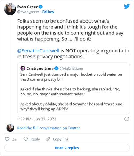 | Welcome to The Technology 202! Happy Social Media Day to all those who observe. Send tips to: cristiano.lima@washpost.com. Below: President Biden is working on a letter to the FTC about post-Roe privacy protections, and the trackers on Planned Parenthood's website are raising concerns. | Sen. Cantwell's elusive endorsement puzzles privacy talks | Sen. Maria Cantwell (D-Wash.) chairs the powerful Senate Commerce Committee. (Jabin Botsford/The Washington Post) | | | Early this year, Sens. Richard Blumenthal (D-Conn.) and Marsha Blackburn (R-Tenn.) struck a deal on a bipartisan data privacy bill aimed at breaking the years-long impasse on passing a federal law — earning the blessing of a top Republican. But the proposal was rebuffed at the time by Senate Commerce Chairwoman Maria Cantwell (D-Wash.), who declined to take it up, according to four people familiar with the negotiations, who spoke on the condition of anonymity to discuss the private talks. The response stymied what was otherwise seen as one of the most viable privacy proposals in years, the people said. Now, Cantwell has grown critical of another major privacy effort negotiated by a trio of top lawmakers, threatening its chances of passage. Meanwhile, her own attempts to advance a long-sought privacy bill are facing external push back. Civil society groups, including privacy and civil rights advocates, have expressed strong reservations to lawmakers about key provisions in a recently circulated version of Cantwell's proposal, the Consumer Online Privacy Rights Act, according to multiple people. Chief among them: a clause that would restrict consumers' ability to bring class-action lawsuits against companies that allegedly have caused "substantial harm." The wrinkle is seen as a potential "poison pill" measure that could hurt the bill's prospects of garnering bipartisan support, two of the people said. The provision was absent from a draft of the proposal that leaked after circulating in late May, but was included in a separate, expanded version circulated more recently, according to two copies reviewed by The Technology 202. Its addition could further muddle the increasingly contentious debate around data privacy, which has been bogged down for years amid partisan disagreements. | | | | | | | | Meta is helping build the metaverse aviation so mechanics will be able to practice servicing different jet engines – preparing them for any complex job. The result: A more skilled workforce. | | | |  | | | | | "They have not engaged Cantwell's team on those concerns, and we'd be happy to have that discussion," Tricia Enright, a spokesperson for Cantwell, said of the criticisms. As chair of Senate Commerce, the committee with primary jurisdiction over data privacy, Cantwell plays a major role in determining the fate of any proposal. Cantwell controls what bills get marked up by the committee — a hurdle that proposals typically must clear before being considered by the full Senate. To date, her panel has yet to take up any major privacy bill, including her own bill and the bicameral bill led by Sen. Roger Wicker (Miss.) and Reps. Frank Pallone Jr. (D-N.J.) and Cathy McMorris Rodgers (R-Wash.), the top Republican on her panel and the chair and ranking member on the counterpart House Energy & Commerce Committee, respectively. Wicker had also been supportive of Blumenthal and Blackburn's framework, three of the people said, but the bill has yet to be formally introduced. Spokespeople for Wicker did not return a request for comment. Spokespeople for Blumenthal and Blackburn declined to comment. Cantwell has cited concerns that her colleagues' proposals lack teeth when it comes to their enforcement mechanisms. In a blunt rebuke, Cantwell said the bill from Wicker, Pallone and McMorris Rodgers has "major enforcement holes" and that she was not close to backing it. Cantwell has criticized a provision in the bill delaying when consumers can file their own lawsuits. The remarks drew blowback from activists including Evan Greer, director of the progressive advocacy group Fight for the Future: | | Last week, a House subcommittee unanimously advanced that bill, the American Data Privacy and Protection Act, marking the most significant development in efforts to pass a law to date. | | Cantwell's office declined to speak to discussions between her and other lawmakers. But a committee aide to the senator, who was not authorized to speak on the record, said that they had concerns that the proposal from Blumenthal and Blackburn, reviewed by The Technology 202, lacked adequate protections against companies pushing consumers into forced arbitration — limiting the number of claims that make their way to court. The aide pushed back on criticisms of the class action language in Cantwell's bill, which they called a narrow carve out that would not affect most of its protections. The concerns from civil society groups, however, highlight that some advocates see weaknesses in Cantwell's approach to privacy enforcement, too. Lawmakers on Cantwell's panel are also pushing to advance legislation that would boost protections for children online, headlined by a separate bill from Blumenthal and Blackburn, the Kids Online Safety Act. But the bill has languished since its introduction in February. Cantwell had told Blumenthal that the committee would mark up the proposal, according to four of the people, but the panel has yet to take it up. Cantwell has publicly talked about wanting to hold a markup next month after the July Fourth recess, but it's unclear what will be on the agenda. | | |  | Our top tabs | | Biden plans to send FTC letter calling for post-Roe privacy protection | It comes amid concerns that law enforcement agencies could seek data from reproductive apps (Demetrius Freeman/The Washington Post) | | | Biden will ask the Federal Trade Commission to protect privacy in the wake of the Supreme Court's overturning of Roe v. Wade, Axios's Sophia Cai repo