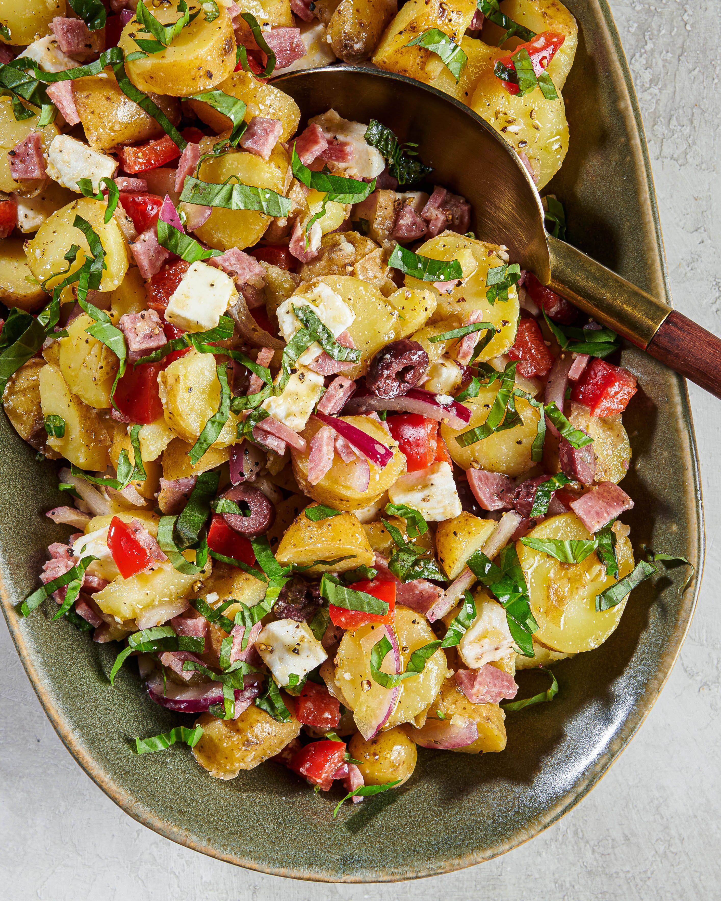 | Did a friend forward this to you? Sign up here. Antipasto It's deep summer in D.C., where the sun is either bright and brash or hidden behind storm clouds. The most bearable time of day is the early morning, when the birds are flitting from tree to tree, the air is relatively cool and a breeze wicks away the humidity. Lately, it's when I start thinking about what to make for dinner, because if it involves turning on my stove, I might try to do some of that hot work before the sun is high in the sky. This salad, a mash-up of an antipasto platter and potato salad, is just the kind of thing I'd make early in the day to beat the heat of the early evening sun. Then, it can sit in my fridge all day, the potatoes absorbing the flavors of the meats, cheeses and pickled vegetables until I'm ready to serve. I like what the "Frankies Spuntino Kitchen Companion & Cooking Manual" has to say about antipasto: "To us, it means a substantial and delicious variety of tastes that are used to jump-start a meal — or, if you really do it up right, it can be a meal in itself. A spread of meats and cheeses and olives, maybe a vegetable, and some olive oil and bread — that's the way to feed people. "If you start off a dinner with a plated appetizer and then move on to a plated entree, the vibe is 'This is mine; that is yours.' A generous spread of antipasto plopped down in the middle of the table, spilling over the edges of a wooden cutting board or sprawling across big platters, says, 'Hey, everybody, dig in.' It says it's family-style, communal, that it's a meal to be shared, one that everybody is eating together, not separately. When you start out sharing, that feeling of conviviality continues throughout the meal — passing plates, talking about what you're eating — and will make for a better night." Mix that vibe right into a pot of new or fingerling boiled potatoes for dinner tonight.  | Today's recipe | Photos by Rey Lopez for The Washington Post; food styling by Lisa Cherkasky for The Washington Post | Antipasto Potato Salad - New or fingerling potatoes are extra creamy >> but you can use the same weight of any other potato instead.
