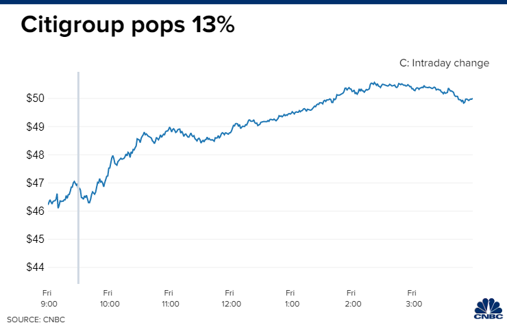 Stocks soared Friday on the back of a fresh round of bank earnings and economic data.