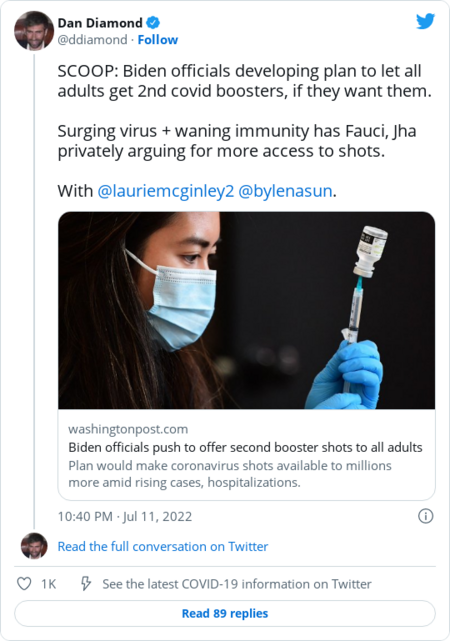 | | Doctors don't need to wait for a condition to worsen or for the patient to be close to death before intervening, senior HHS officials told reporters yesterday. EMTALA also permits a provider to terminate a pregnancy when an emergency condition could seriously impair the patients' health. And failing to do so when it's necessary carries steep penalties: Hospitals could face fines or be booted from the Medicare program. | | Lawrence Gostin, director of the O'Neill Institute for National and Global Health Law: | | | | | | But the memo also nodded to this fact: EMTALA doesn't prevent a doctor from being sued, though it could serve "as a defense to a state enforcement action." Essentially, HHS is arguing that the long-standing federal emergency medical law supersedes any conflicting state laws that may otherwise prohibit an abortion. "I think [the guidance] was needed," said Diana Nordlund, an emergency physician in Michigan and spokesperson for the American College of Emergency Physicians. "But I also don't see it as a panacea, because, of course, as the guidance listed, it doesn't completely obviate the potential for legal action." Another ACEP official, Laura Wooster, said a "significant amount of uncertainty" still remains for emergency physicians — and that the trade group is assembling a team of medical experts to examine the range of clinical and legal implications of a post-Roe world. | | |  | Coronavirus | | Biden officials push to offer second booster shot to all adults | In light of a recent uptick in cases, Biden administration officials want to make a second round of booster available for all adults. (Frederic J. Brown/AFP via Getty Images) | | | The Biden administration is developing a plan to allow all adults to receive a second coronavirus booster shot, pending federal agency sign-offs, as the White House seeks to blunt a recent surge, The Post's Dan Diamond, Laurie McGinley and Lena H. Sun scoop. | | Officials say they're hoping to broaden access to boosters within two weeks to use up vaccine doses nearing their expiration date and to avoid having the strategy conflict with the administration's fall booster campaign. That effort is likely to kick off in October, using modified vaccines specifically tailored to target the omicron subvariants. Swiftly expanding access could also help allow people who are boosted now receive the reformulated shots when they become available. A second booster dose is currently only available for those 50 and older and some immunocompromised people. But convincing Americans' to get another shot could be an uphill battle, since only 34 percent of eligible people have received their first booster dose. But … administration officials are concerned by data suggesting immunity wanes within the first several months of the first booster shot. Hospitalization and death levels are climbing, though they remain much lower than January's peaks. Some outside experts say it's too early to offer the shot to healthy people under 50, saying there isn't much data to support the strategy. The booster plan would need formal sign off from regulators, though it has the backing of White House coronavirus czar Ashish Jha and Anthony S. Fauci, the government's top infectious-disease expert. In an interview with our colleagues, Fauci said he's "leaning" toward allowing second booster shots for younger adults, pending authorization from the Food and Drug Administration and the nod from the Centers for Disease Control and Prevention. More from Dan: | | |  | Agency alert | | Federal watchdog: CDC should improve how it tracks coronavirus spread via air travel | The CDC is being criticized for its data system that tracks and analyzes the spread of the coronavirus during air travel. (John Minchillo/AP) | | | The Centers for Disease Control and Prevention will work to improve how it tracks and analyzes the spread of the coronavirus on planes, following a report released yesterday by a government watchdog agency that found its current data system "needs substantial improvement," Bloomberg News reports. The Government Accountability Office found that the agency's technological tools were outdated, cumbersome and prone to inaccuracies that hinder its ability to monitor public health risks and warn officials about possible disease threats in a timely manner. The GAO recommended that the CDC redesign its system so that it's able to conduct broader, more effective surveillance and subsequently improve its contact tracing. In response to the report, the agency said that it's working with the Biden administration and Congress to enhance its data capabilities. | | |  | Reproductive wars | | Abortion rights advocates submit signatures for Michigan ballot measure | Leaders of the Reproductive Freedom for All campaign turned in 753,759 signatures to qualify the measure for Michigan's November ballot. (Joey Cappelletti/AP) | | | Michigan voters could soon decide the future of abortion access in the state after a coalition of advocates said they turned in a historic number of signatures to put a constitutional amendment protecting the procedure on November's ballot. The effort puts even more attention on Michigan's election, where the state's vulnerable Democratic governor and attorney general have made abortion rights a focal point of their reelection campaigns. The amendment seeks to enshrine the right to make and carry out decisions related to birth control, pregnancy, prenatal care and childbirth. Key context: The push to codify abortion access comes after the Supreme Court returned the issue to the states, where, in Michigan, performing the procedure is a felony in most cases under a pre-Roe ban. A judge has since temporarily suspended enforcement of the 1931 law, protecting access to legal abortions for now. The 753,759 signatures submitted by the campaign are nearly double the amount needed to qualify for a ballot initiative. Organizers of the ballot measure told The Health 202 