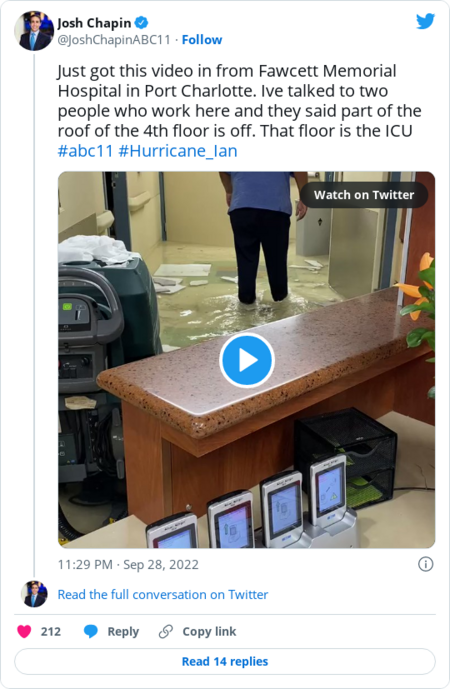 - Damages from the storm cut off potable water to at least nine hospitals in southwest Florida.