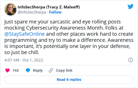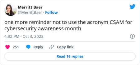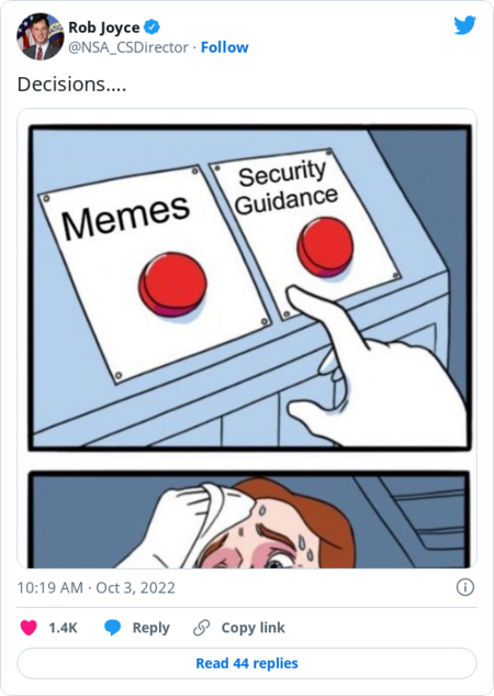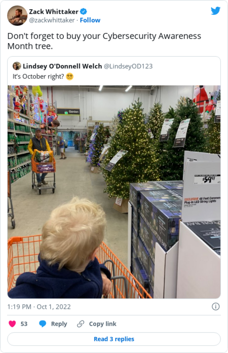 Welcome to The Cybersecurity 202! One thing I did this past weekend was play Dungeons & Dragons with my favorite campaign creator, Keith Baker. (This is the character I played.) You just never know what sentences you'll end up uttering in your lifetime. Below: Officials warn of cyberthreats ahead of midterm elections, and revelations about Pegasus spyware rock Mexico. First: | For better or worse, Cybersecurity Awareness Month sparks a running commentary | Cybersecurity Awareness Month: Trick or treat? (Daniel Acker/Bloomberg News) | | Ever since 2004, October has been Cybersecurity Awareness Month, created by the Department of Homeland Security and the nonprofit, industry-sponsored National Cybersecurity Alliance to … well … promote awareness of cybersecurity. "During Cybersecurity Awareness Month, we highlight the importance of safeguarding our Nation's critical infrastructure from malicious cyber activity and protecting citizens and businesses from ransomware and other attacks," reads the annual proclamation President Biden released Monday. "We also raise awareness about the simple steps Americans can take to secure their sensitive data and stay safe online." But not everyone is so into it. Every year, the awareness month provokes a kaleidoscope of reactions on Twitter. Government officials push their message alongside defenders who view the event as worthwhile. Lots of reporters and cyber pros are tired of hearing about it and think it's pointless at best. Then there's everything in-between and a bunch outside of that, too. My predecessor Joseph Marks did a thoughtful examination a couple years ago about the value, or lack thereof, of Cybersecurity Awareness Month. The mix of responses comes in the form of meme warfare, corporate shilling and authentic enthusiasm. This year is no exception. | Rob Joyce, the director of cybersecurity for the National Security Agency, might most exemplify the push-and-pull of whether to joke about, or celebrate, the month: | Most government cybersecurity officials, though, took a purely earnest approach, at least on the first workday of the month. Here's Cybersecurity and Infrastructure Security Agency Director Jen Easterly, advocating for the agency's message for the event (and later suggesting it shouldn't just be one month): | National Cyber Director Chris Inglis offered a video message: | The FBI and Inglis's new hire Camille Stewart Gloster also took the sincere approach, although Stewart Gloster promised a "fun video series" later. | Some leaned fully toward making jokes on the occasion of Cybersecurity Awareness Month. Here's Jason Atwell of cybersecurity firm Mandiant with the "Zoolander" reference, with the comedy message of "maybe nobody's paying attention": | Some of the silliness around Cybersecurity Awareness Month comes from a place of affection, of course. Take Confidence Staveley, founder of the Cybersafe Foundation (with … a "Hunger Games" whistle-dance?): | Cybersecurity writers and reporters are among the most biting in their commentary on Cybersecurity Awareness Month. It comes, mostly, from a place of overflowing emails from public relations firms. I personally received my first Cybersecurity Awareness Month pitch in mid-August. (Full disclosure: I've made jokes on Twitter about the holiday as recently as mid-September.) | It's a little like the general public's exasperation about holiday decorations smacking everyone in the eyeballs long before the holiday itself, which TechCrunch's Zack Whittaker seized on: | Sorry, Benjamin Freed of StateScoop, you are definitely not going to get what you're asking for this year: | Andrea Peterson of the Record would, in essence, like some of their life back: | At least public relations pros can have a sense of humor about it, too, like Anne Cutler, communications director for Keeper Security: | It's not just government officials who are giving Cybersecurity Awareness Month a chance. Bryson Bort, CEO of cybersecurity company Scythe, solicited and received sincere answers on how to measure whether the event is making a difference: | The cynical running jokes on Twitter don't amuse Tracy Maleeff, a security researcher for the Krebs Stamos Group: | Aside from the question of whether to celebrate or joke about the event, there are separate, serious issues related to October and Cybersecurity Awareness Month. As the term "child sex abuse material" and its acronym "CSAM" have grown in use, there have been more frequent calls for people to not use that acronym for Cybersecurity Awareness Month. Here's Merritt Baer of Amazon Web Services (Amazon founder Jeff Bezos owns The Washington Post): | October is also Domestic Violence Awareness Month, putting an extra spotlight on October for Eva Galperin, co-founder of the Coalition Against Stalkerware and director of cybersecurity for the Electronic Frontier Foundation: | Even with somber overlaps, there's still room for witty remarks from Cisco's Wendy Nather: | |  | The keys | | Officials warn about security threats ahead of midterm elections | There's just a month until midterm elections. (Robb Hill for The Washington Post) | | Officials from the Department of Homeland Security and FBI told reporters that they're focusing on election threats in the run-up to November midterm elections, the Wall Street Journal's Dustin Volz reports. The elections could see a confluence of threats, including foreign hacks, disinformation campaigns, threats to election workers and malicious insiders. It's a "more complex threat environment than what occurred in 2020 or that we've ever seen because of the various components of threat," CISA Director Jen Easterly said. So far, the U.S. government notably hasn't seen foreign governments target election systems like in previous years, officials said. But they noted that they're on alert for potential cyberattacks between now and Nov. 8. FBI agents are concerned that a foreign disinformation campaign could boost incorrect or 