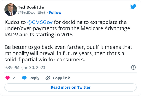| | Lawrence Gostin, director of Georgetown's O'Neill Institute for National and Global Health Law: | | | | | | |  | Agency alert | | CMS aims to claw back billions from Medicare Advantage plans under newly finalized rule | The agency estimates that it will be able to recoup $4.7 billion in overpayments and improper charges from Medicare Advantage plans over the next decade. (Pablo Martinez Monsivais/AP) | | | The Centers for Medicare and Medicaid Services will audit Medicare Advantage plans aggressively under a highly anticipated rule that was finalized yesterday, as the Biden administration seeks to crack down on insurers that have overcharged the federal government, Stat reports. The agency estimates that it will claw back about $4.7 billion over the next decade under the new auditing system. The rule, which was proposed in 2018 and has been part of a decade-long feud between health insurers and regulators, is already drawing blowback from industry groups. The details: Under the current rules, the agency selects a sample of beneficiaries enrolled in a Medicare Advantage plan and compares the patient diagnoses that the insurer submits to the government with their actual medical records. In the past, some insurers have been accused of fraud for inflating the number of health conditions their members have, or making them out to be sicker than they actually are, to collect extra payments. Under the new policy, CMS will extrapolate the error rate found in the samples across the plan's entire membership to recoup improper charges or overpayments. However, in a significant break for insurers, the agency said it won't extrapolate any errors found in audits of Medicare Advantage plans between 2011 and 2017, cutting down on how much the companies would have to pay back for those years, Stat's Bob Herman and Tara Bannow note. | | Ted Doolittle, a former senior Medicare official: | | | | | Biden administration moves to strengthen Obamacare's birth control mandate | | The Biden administration is seeking to reverse a Trump-era rule allowing employer and school sponsored health plans to opt out of the Affordable Care Act's requirement that they cover contraceptive services at no additional charge on moral grounds. The proposed rule, released yesterday by the departments of Health and Human Services, Labor and Treasury, would eliminate the moral exemption while retaining an existing religious one. It would also set up a new pathway for people enrolled in health plans offered by employers with religious exemptions to obtain contraceptive services through a willing provider at no cost. The bigger picture: The push to strengthen Obamacare's free contraception requirement is the latest move by the administration aimed at expanding reproductive health services in the wake of the Supreme Court's decision rolling back federal abortion rights. | | Families USA, a left-leaning consumer health lobby: | | | | | | |  | Reproductive wars | | RNC urges GOP candidates to 'go on offense' on abortion in 2024 | The resolution came as Ronna McDaniel won her fourth term as chair of the Republican National Committee. (Kyle Grillot/Bloomberg News) | | | The Republican National Committee is formally urging GOP lawmakers and campaigns to "go on offense in the 2024 election cycle" on abortion and pass the strictest restrictions on the procedure as possible as the party looks to bounce back from its lackluster midterm results, The Post's Amy B Wang reports. The committee passed a resolution at its winter meeting on Friday directing lawmakers in Congress and state legislatures to pass antiabortion laws, referring to proposals that include outlawing the procedure after cardiac activity is detected, at about six weeks of pregnancy. The resolution alluded to Republicans' disappointing performance in the November elections, months after the Supreme Court overturned Roe v. Wade, but appeared to place the blame on GOP candidates who did not sufficiently publicize their antiabortion views. This time around, Republican candidates should work to draw a clear distinction between themselves and Democrats' "extreme" position on abortion, the RNC resolution states. | | Susan B. Anthony Pro-Life America: | | | | | | |  | On the Hill | | ICYMI: These Democrats will help lead the House Ways and Means Committee | | Rep. Lloyd Doggett (Tex.) is slated to serve as the ranking Democrat of the health subcommittee, after serving as the panel's chair when Democrats had control of the chamber. Rep. Bill Pascrell Jr. (N.J.) was reappointed as the top Democrat on the oversight subcommittee. Rep. Richard Neal (Mass.) will be the ranking Democrat of the full committee, alongside Rep. Judy Chu (Calif.) as vice ranking minority-party member. Read the full roster here. | | |  | In other health news | | - On tap today: Minnesota Gov. Tim Walz (D) is slated to sign the Protect Reproductive Options Act, which codifies resident's right to an abortion and reproductive health care like fertility treatments and contraception into state law, his office confirmed to The Health 202.