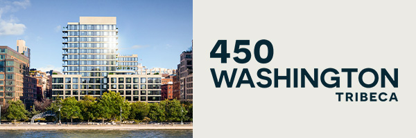 INTRODUCING 450 WASHINGTON  Located directly on Tribeca's prized waterfront, 450 Washington is modern luxury living, reimagined. Designed by world renowned architects, Roger Ferris + Partners, each residence at 450 Washington has been uniquely considered and carefully designed to create sophisticated homes with fine modern detailing. Open Plan Studios from $939,000 1 Bedrooms from $1,240,000 2 Bedrooms from $2,150,000 3 Bedrooms from $4,395,000 4 Bedrooms from $4,995,000 Onsite model residences and sales gallery now open.   450washington.com | 212.570.4500 | @450washingtonnyc  Exclusive Sales and Marketing Agent: Corcoran Sunshine Marketing Group  THE COMPLETE TERMS ARE IN AN OFFERING PLAN AVAILABLE FROM SPONSOR, RREF II 34 DESBROSSES OWNER, LLC, C/O THE RELATED COMPANIES, 30 HUDSON YARDS, NEW YORK, NEW YORK 10001 UNDER FILE NO. C19-0004. AS NOTED HEREIN CERTAIN IMAGES ARE ARTIST'S RENDERINGS, WHICH ARE INCLUDED FOR REPRESENTATIONAL PURPOSES ONLY AND ARE THEREFORE SUBJECT TO VARIANCES. PROPERTY ADDRESS: 450 WASHINGTON STREET, NEW YORK, NEW YORK. EQUAL HOUSING OPPORTUNITY |