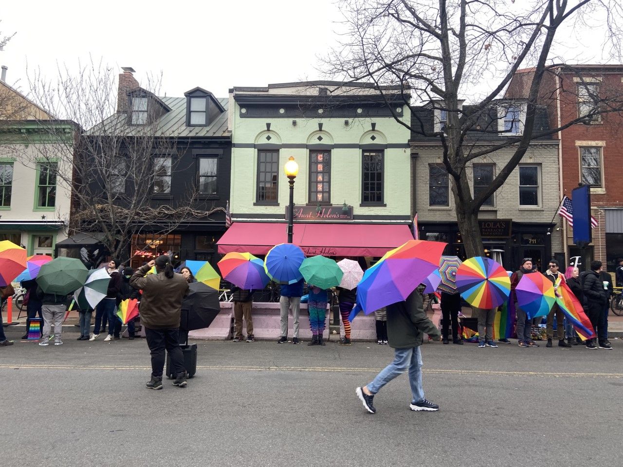 | A D.C. restaurant feared a Proud Boys protest, so neighbors came to defend it. | LGBTQ advocates and allies outside Crazy Aunt Helen's on Capitol Hill. (Katie Mettler/The Washington Post) | - The details: Crazy Aunt Helen's, an LGBTQ-friendly Capitol Hill restaurant, hosts a bimonthly drag story hour brunch. About 200 LGBTQ advocates, allies and others lined the street outside on Saturday in anticipation of a protest.