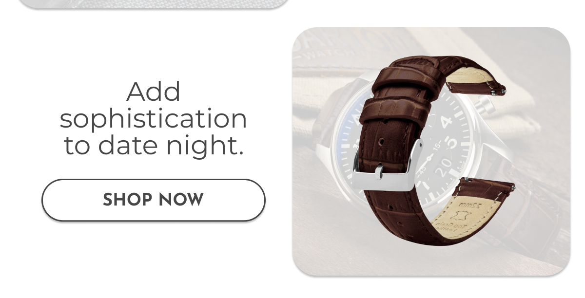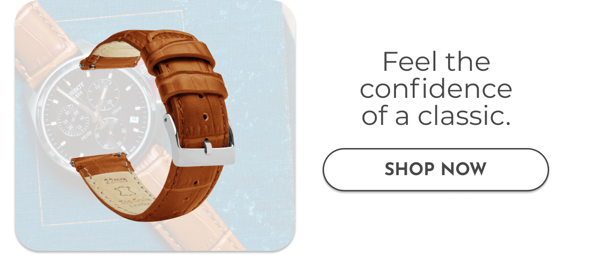 Look and feel your best with extraordinary design and value. Enjoy exquisite detail with a 2mm taper from watch head to buckle. Padded for style and comfort. Crafted from hand-selected top grain leather and embossed with premium alligator texture. | | | | |